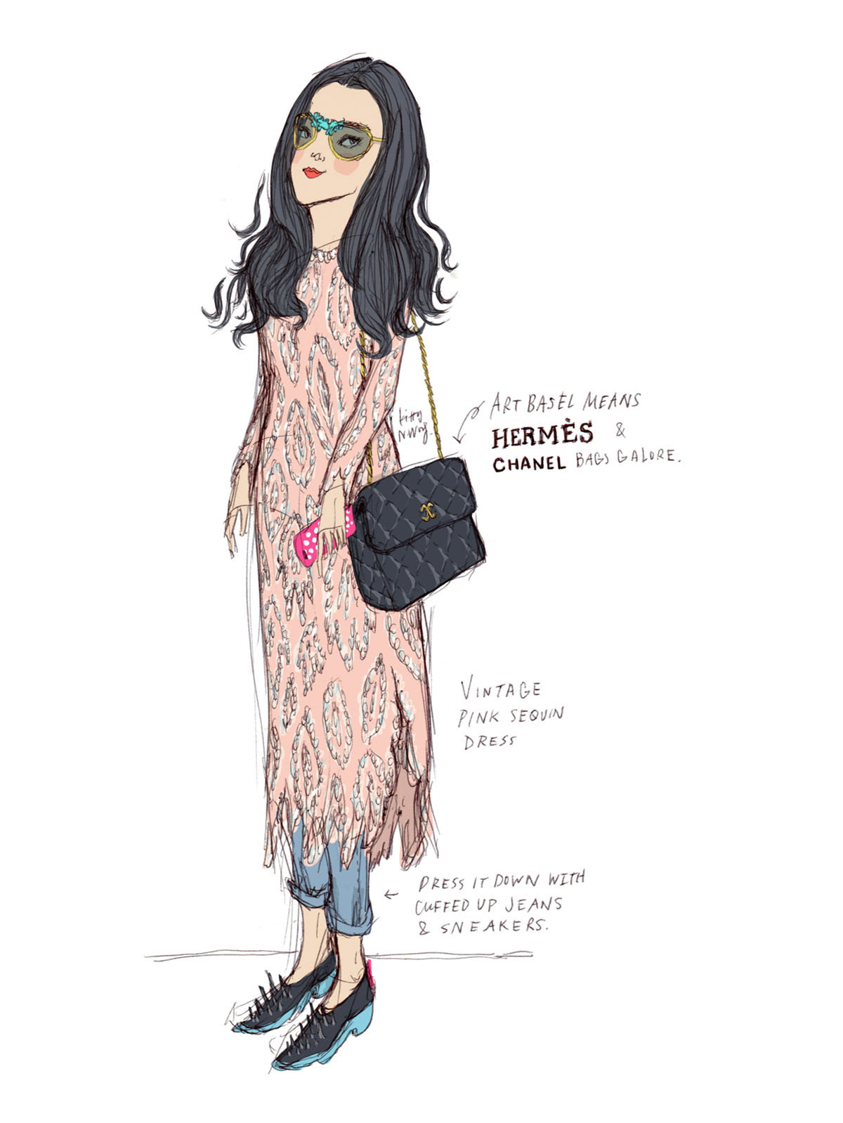 Streetstyle illustration from Art Basel. Ballpoint pen + digital colour.