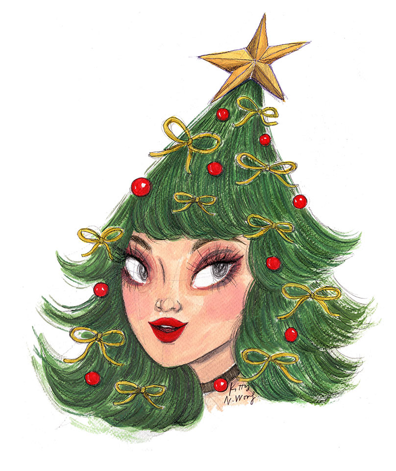 'Miss Christmas' Fashion illustration by Hong Kong illustrator Kitty N. Wong.