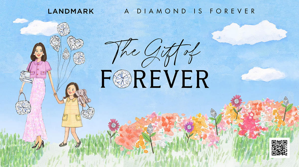 Mother’s Day Key Visual and digital mural by Hong Kong illustrator Kitty N. Wong for A Diamond Is Forever and LANDMARK in Central Hong Kong.
