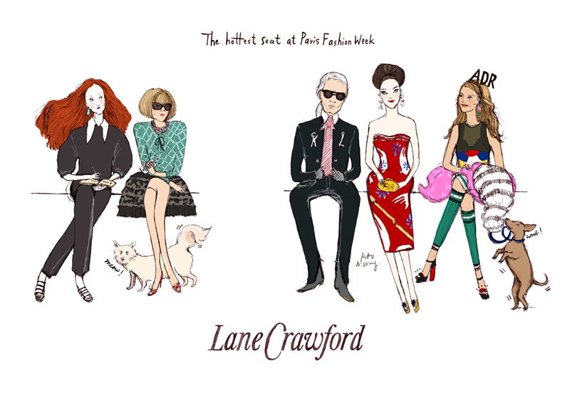 Live Drawing and in-store display for Lane Crawford, featuring Karl Largerfeld (and his cat Choupette), Anna Wintour, Grace Coddington, Fan Bing Bing and Anna Della Russo.
