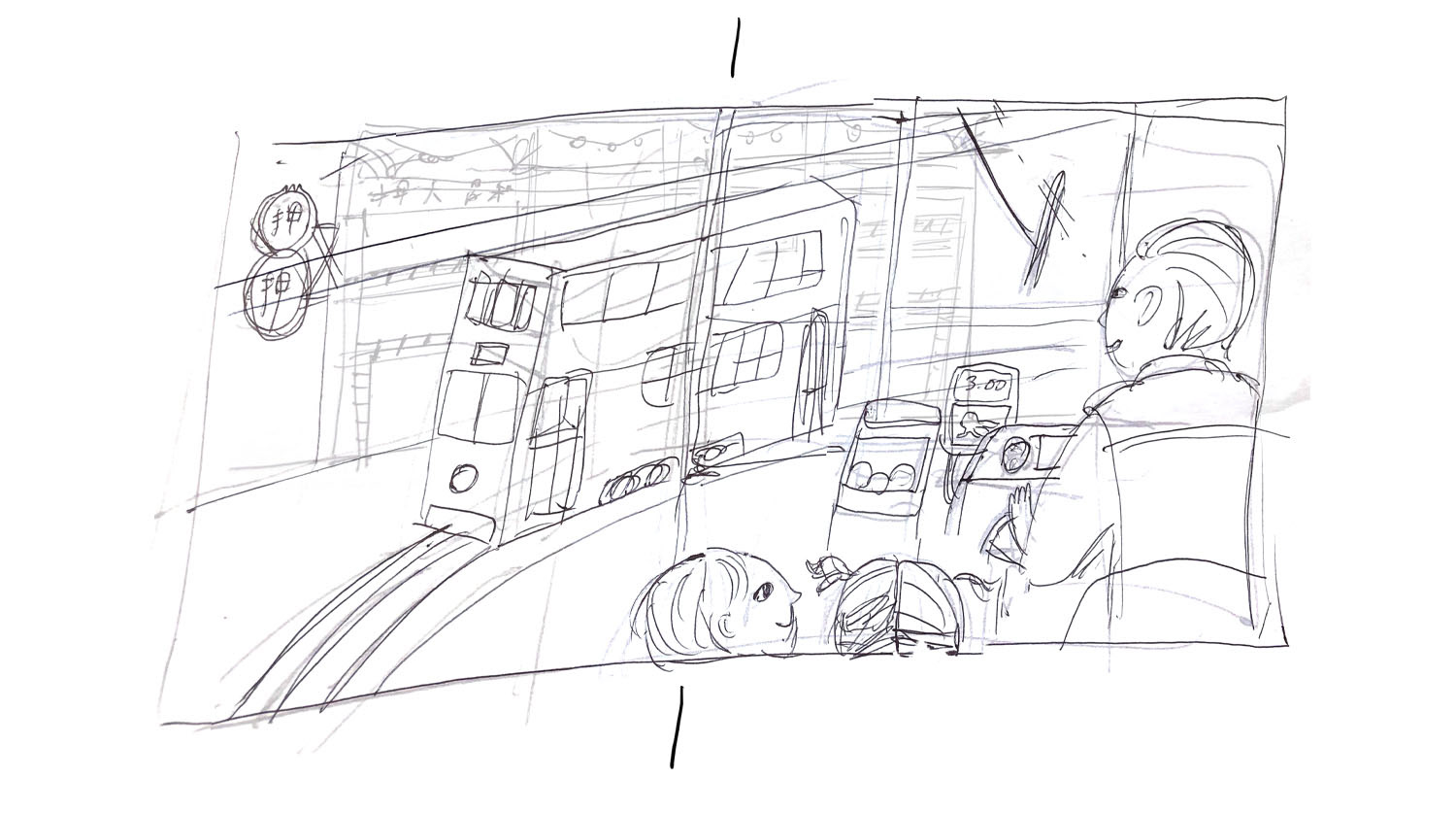 The artwork needed to show iconic Hong Kong scenes to showcase the 12 sounds the book would feature. The pages are landscape artworks featuring the two main characters and 1-2 sound buttons that can be pressed to play a sound.